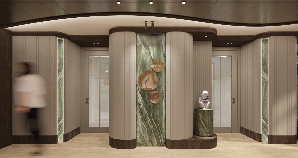 The interior design of the three-story detached house in Afyon is created for a family of four. In the project, common living areas such as the living room, kitchen, and winter garden are placed on the ground floor, while the bedrooms are arranged on the upper floor. The curvilinear forms that stand out in the entrance hall are integrated with the characteristic textures of natural wood and stone, reflecting throughout the living space. In the common areas, spatial continuity became one of the defining elements of the design approach.